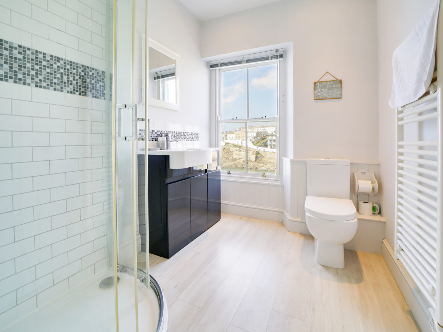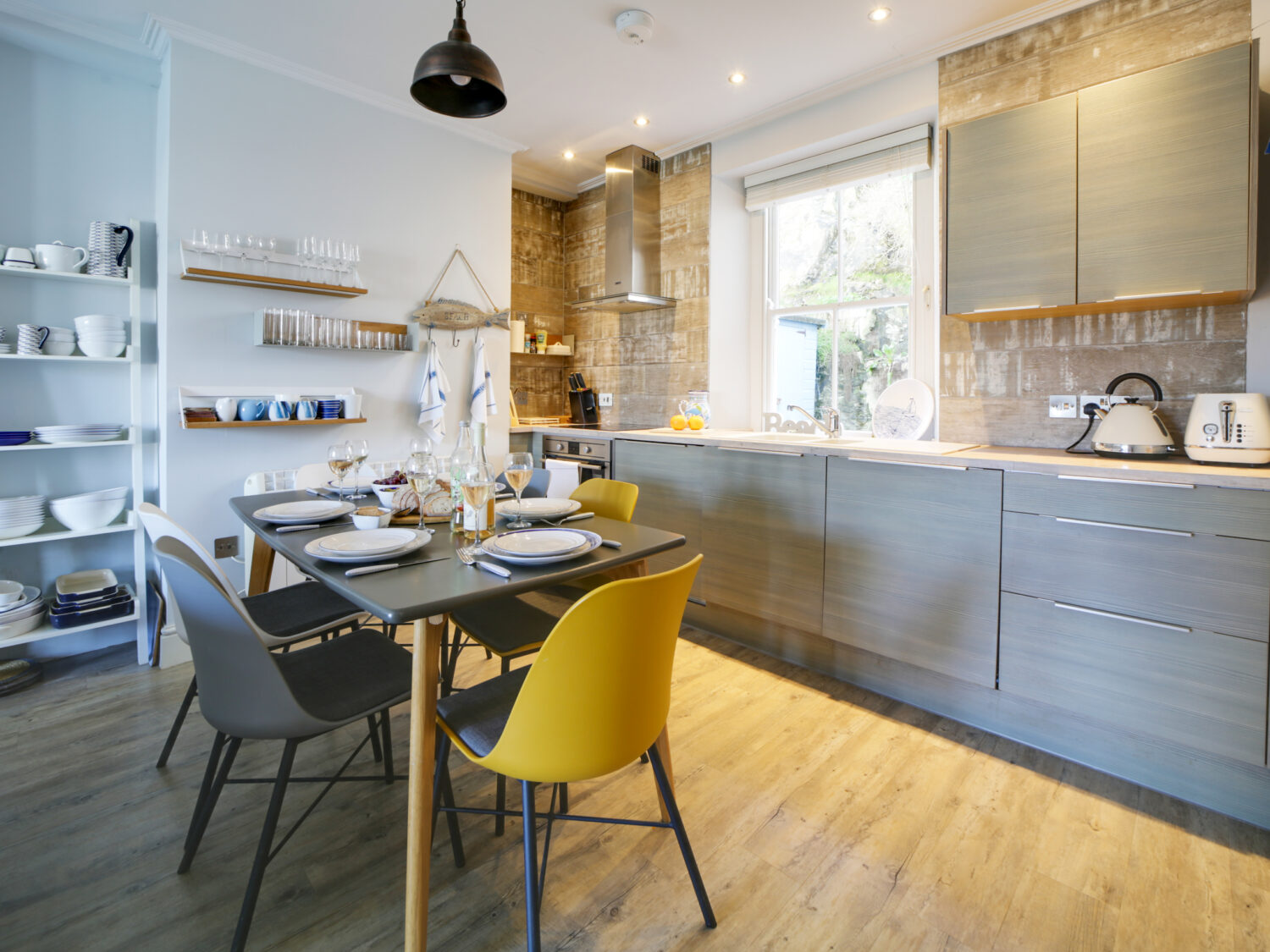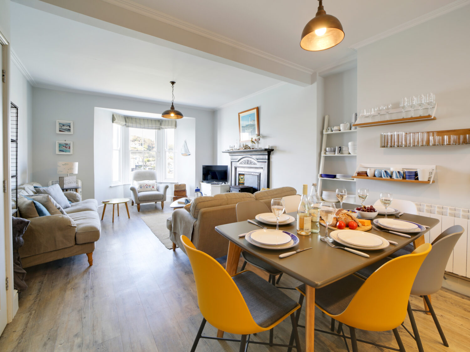 This beautiful Victorian house offers an attractive downstairs open plan kitchen/ living area flooded with light from the large bay window where you can sit and watch the local boats coming and going as well as the far-reaching coastal views. For those winter stays, there is a cosy wood burning stove to enjoy after a bracing walk along the nearby Southwest Coastal path.