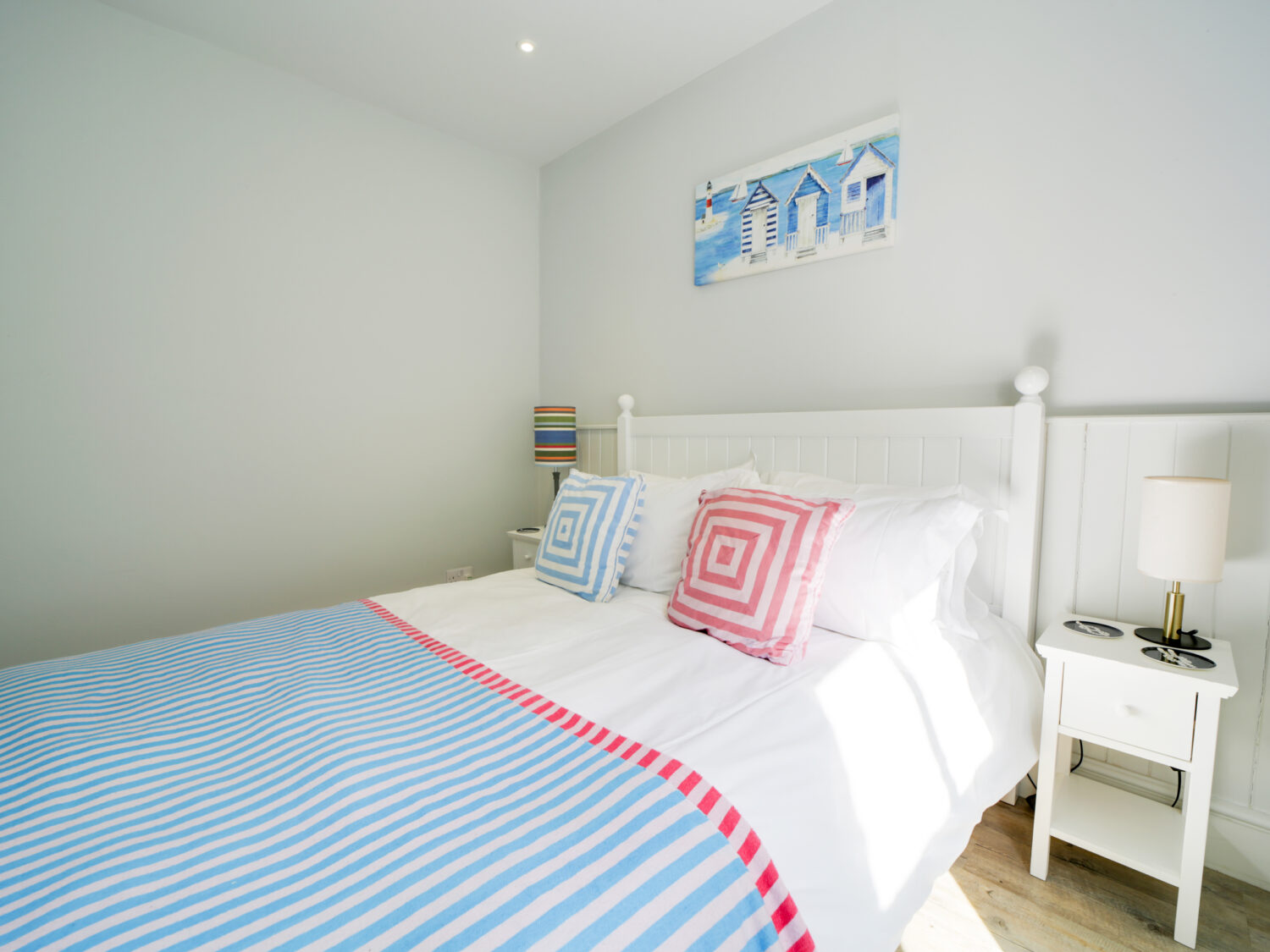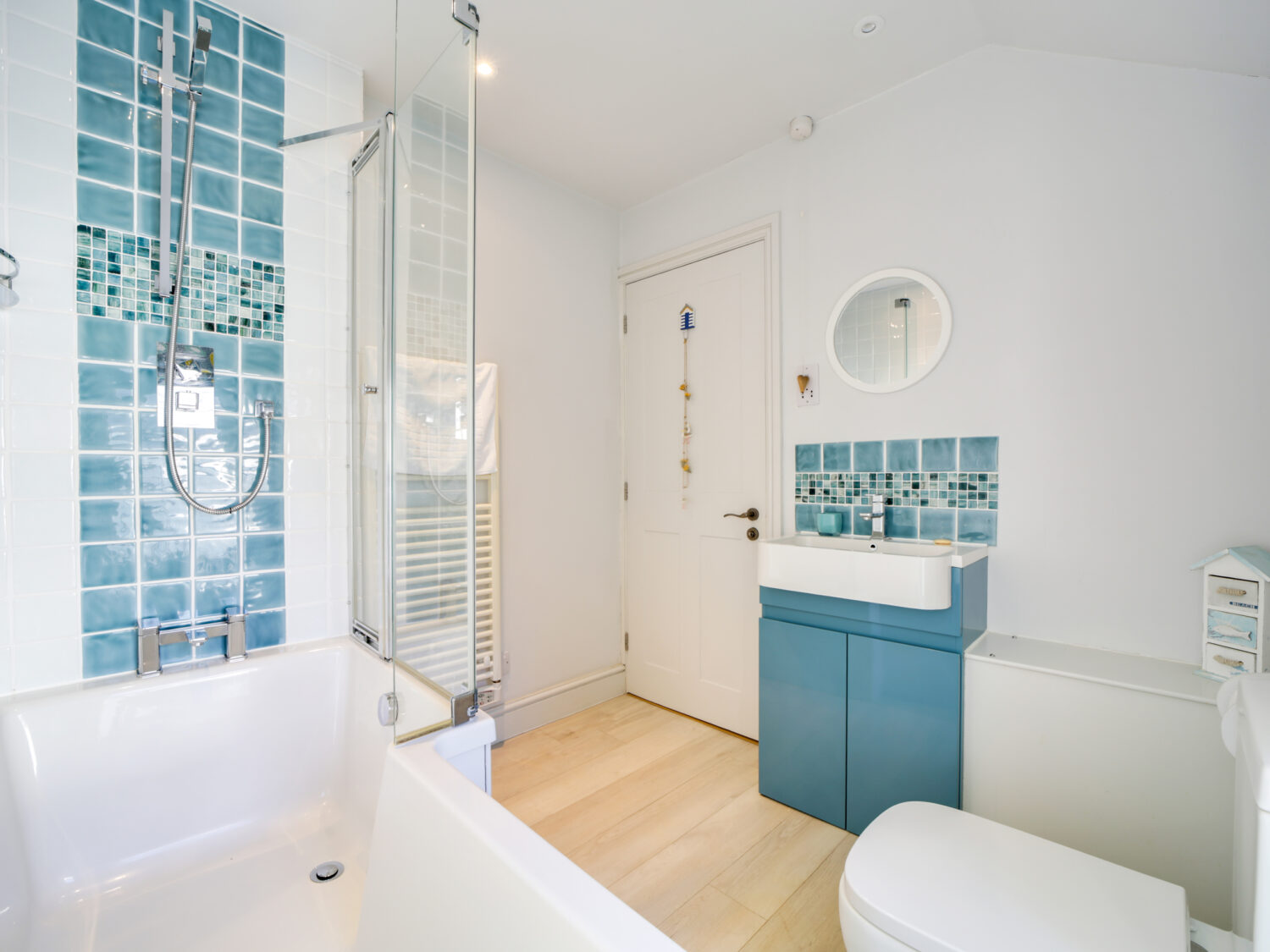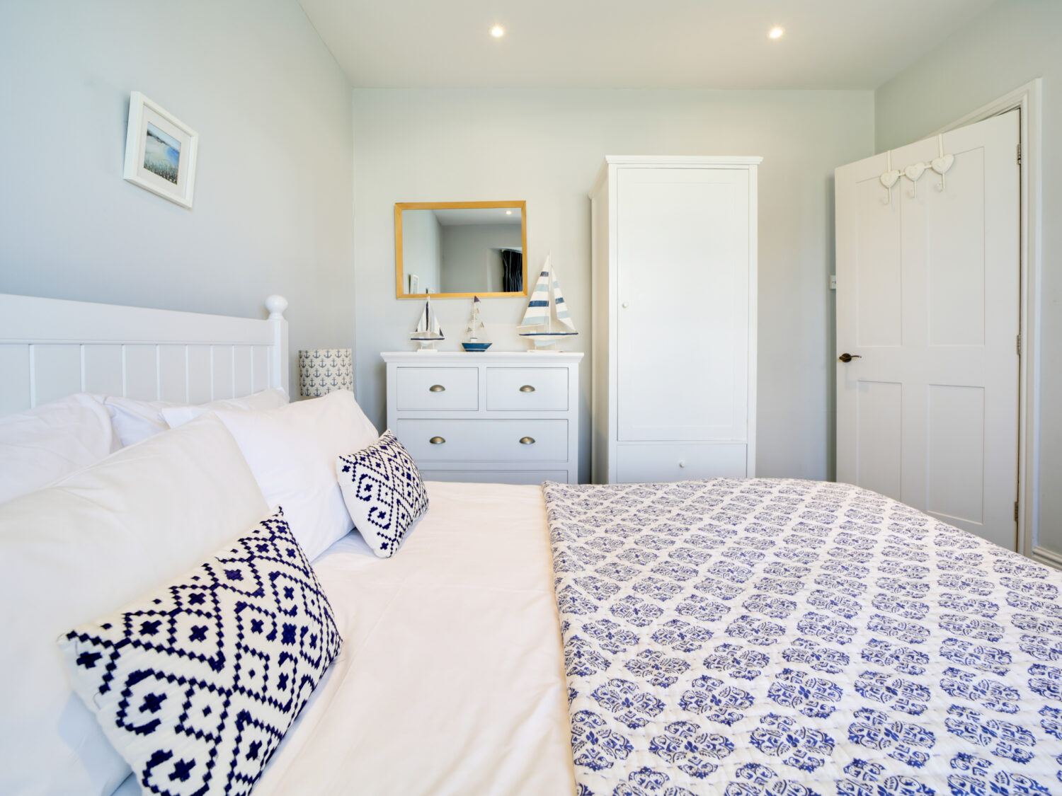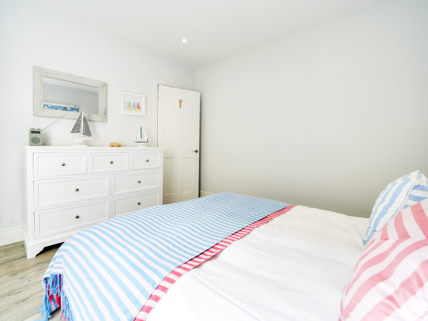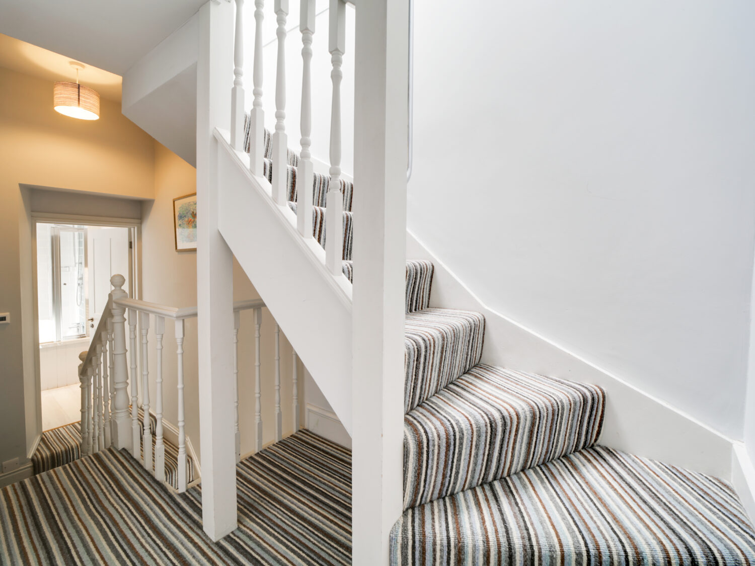 On the first floor there are two well-appointed double bedrooms with King Size beds. The master bedroom is decorated with a calming palette of blue & white colour and enjoys glorious harbour views from the large bay window. Adjacent is a large family bathroom and a second shower room. Stairs to the second-floor lead to a sunny twin bedroom and bijou home office working area with high speed Wi-Fi on the landing.